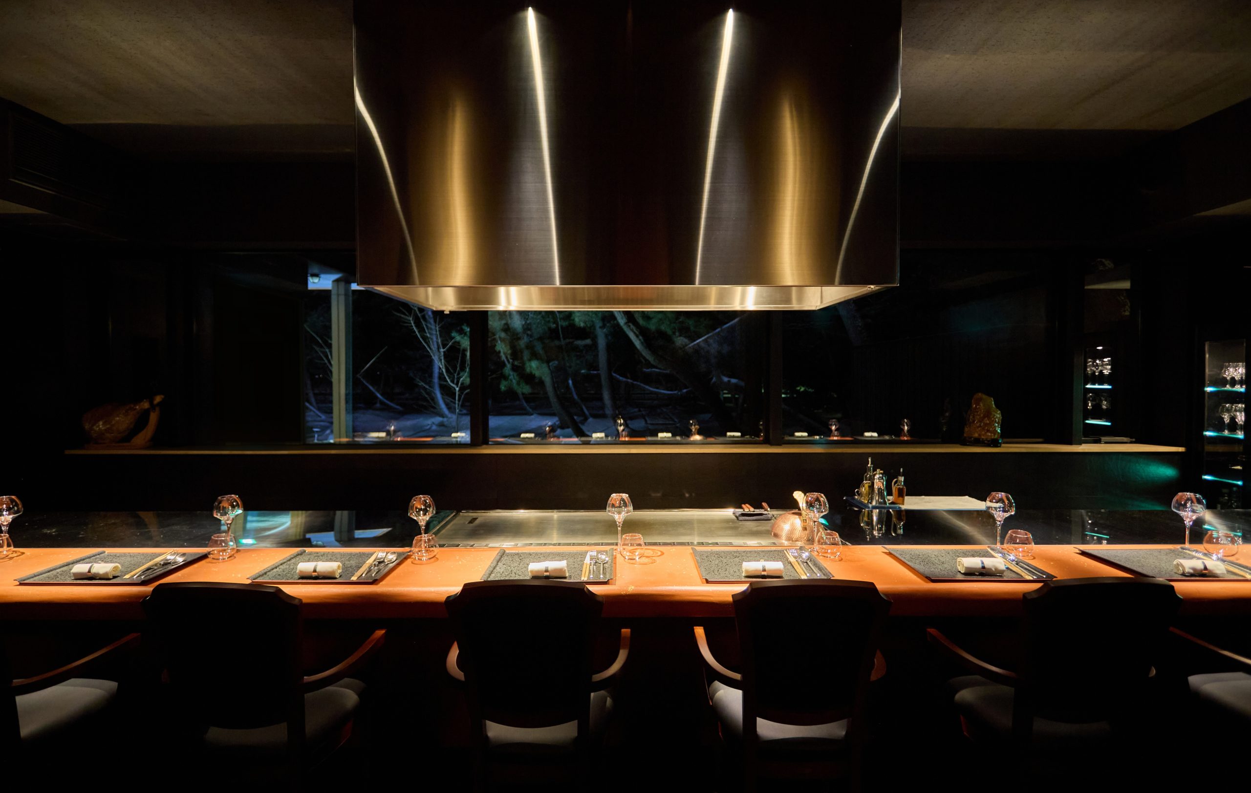 そして、空間を彩るのは、佐渡が誇る無名異のカウンター。